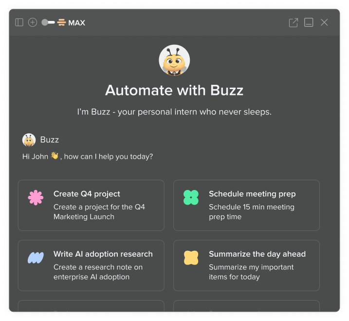 Your personal AI intern who can create projects, draft emails, set meetings and share workspace insights.