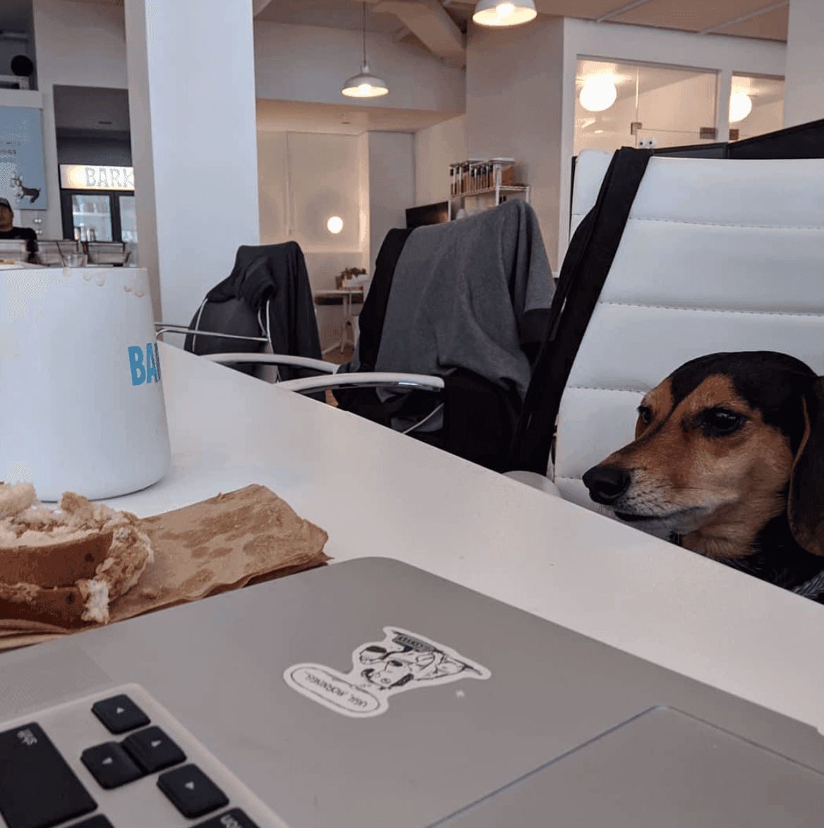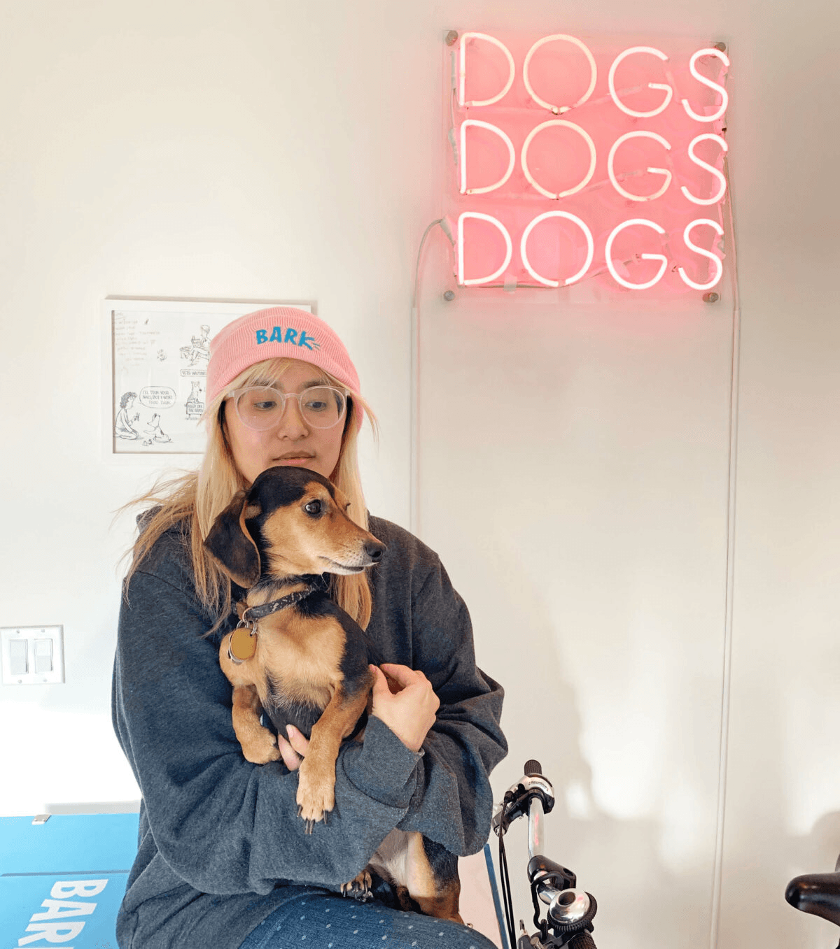 9:30 AM, BARK Office By 9:30, I've finished my commute to work with the two dogs (it takes about 40 minutes when they’re both with me), and arrive at the BARK offices. Everyday I try to get in around 9:30 or 10. In my role at BARK, I help manage “Bark For Good,” our social impact group. BARK has over 1,000 rescue and shelter partners across the US and Canada, and one of our main goals is to help coordinate donations to shelters in need. We also work a lot on education. We feel very strongly that dogs are individuals and our goal is to make all dogs happy. A lot of our education is helping people learn how to communicate with their dogs better.