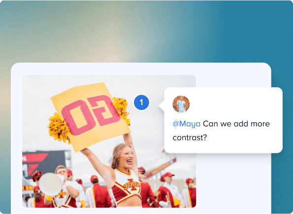 Comment threads, @mentions, and in‑line chats keep discussion tethered to the work item it affects. Need quick input from the legal team? Tag them on the exact line in the asset. Handoff miscommunication becomes a relic of the past, and silos melt away.