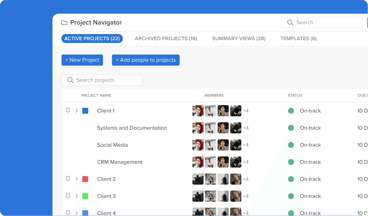 Because the LVL-Up team is entirely remote, they knew from the beginning of their journey that they’d need a project management tool to power their business. Their implementers worked in different time zones all over the world, and implementers frequently have to hand-off different parts of a project from one person to another. Because of the fluid and ever-changing nature of their business, having one home base for all of their projects, communications and action items where everyone could collaborate was imperative. A few must-haves that the LVL-Up team identified at the beginning of their project management search included the ability to quick-time chat, a “home” area for each project where they could view all files uploaded, and an intuitive, user-friendly interface. Many of LVL-Up’s implementers hadn’t used a project management tool before, so they needed something that was easy to understand and teach to their implementers. Being able to scale up quickly and collaborate immediately was also important to the LVL-Up executive team.