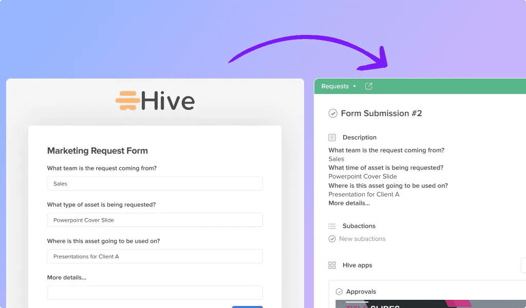 Work begins with standardized requests submitted through Hive Forms, ensuring that each project includes the necessary context and requirements from the start.