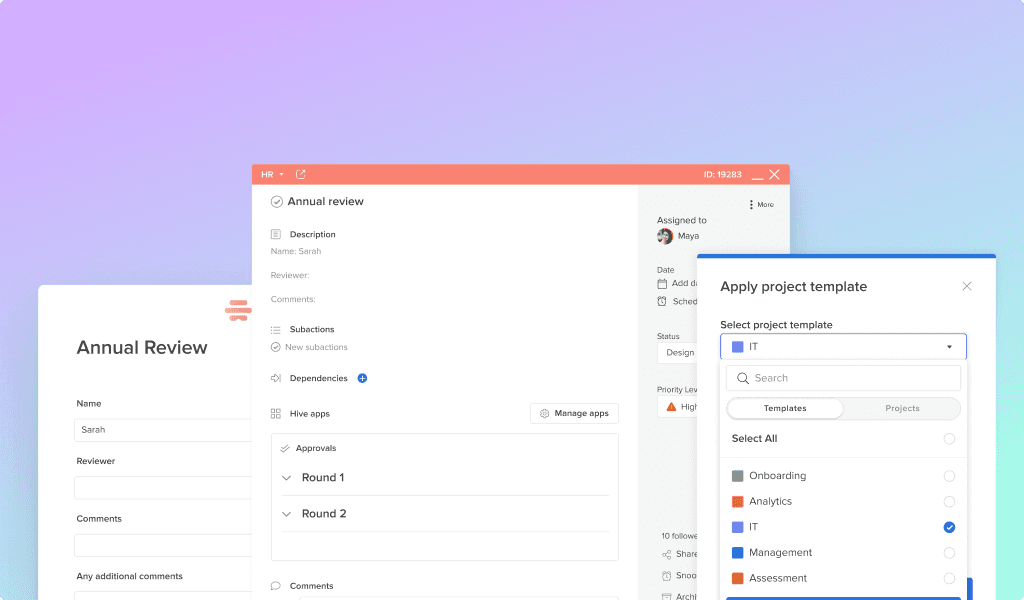 Hive Automate to assign work, apply templates, and standardize timelines