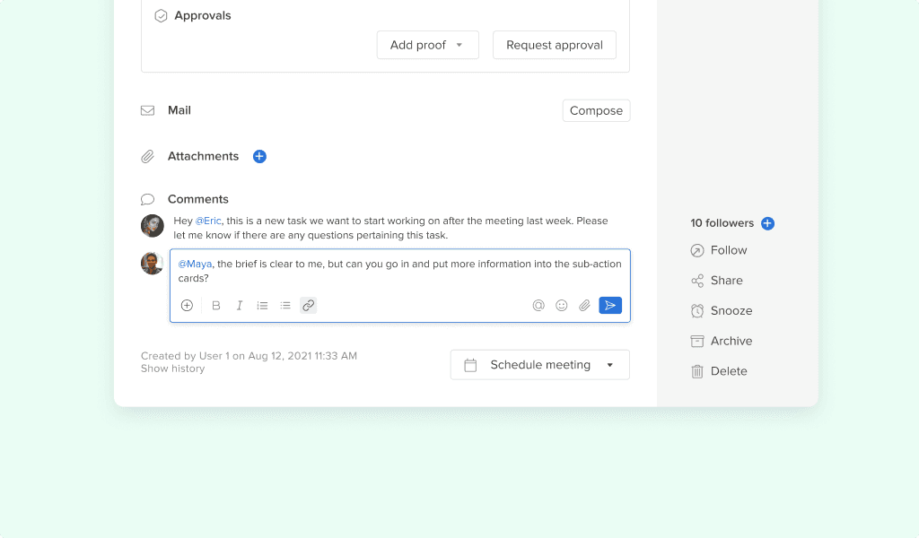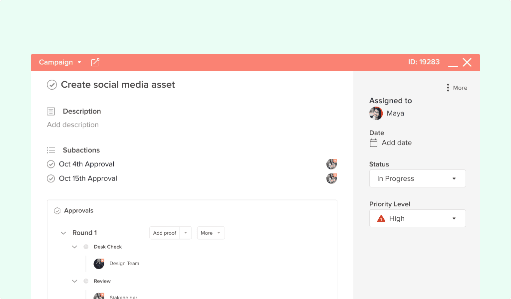 Consistency is important for the team, so having transparency and visibility across projects and approvals - past and present - is a key benefit of Hive. Communicating within the projects and adding notes to Action cards streamlines conversations and makes it easy for team members to communicate internally and to get the complete picture.