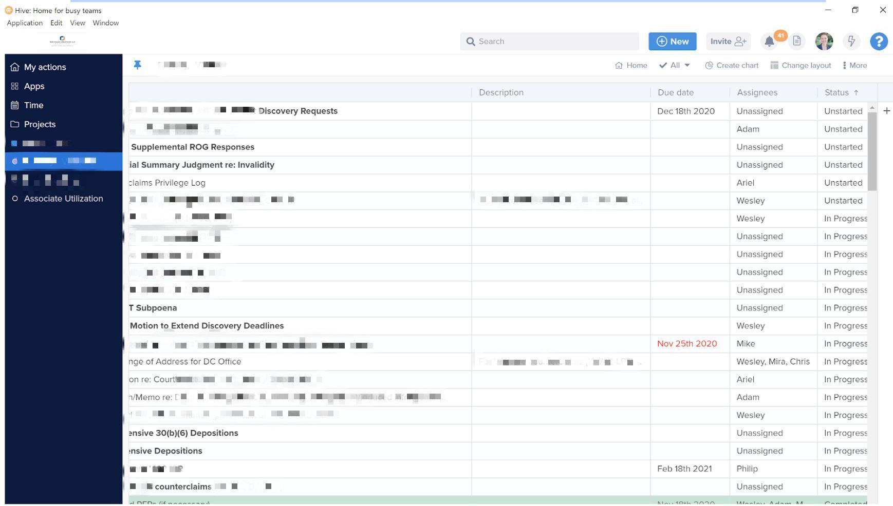 Lastly, one of the best parts about working in Hive is that, throughout the case and project lifecycle, the Reichman Jorgensen team can track all work on the case in Hive, which provides an audit trail for their team and clients and logs all progress. Now, if someone new needs to join in on the case or quickly get an update, they can go straight to Hive.