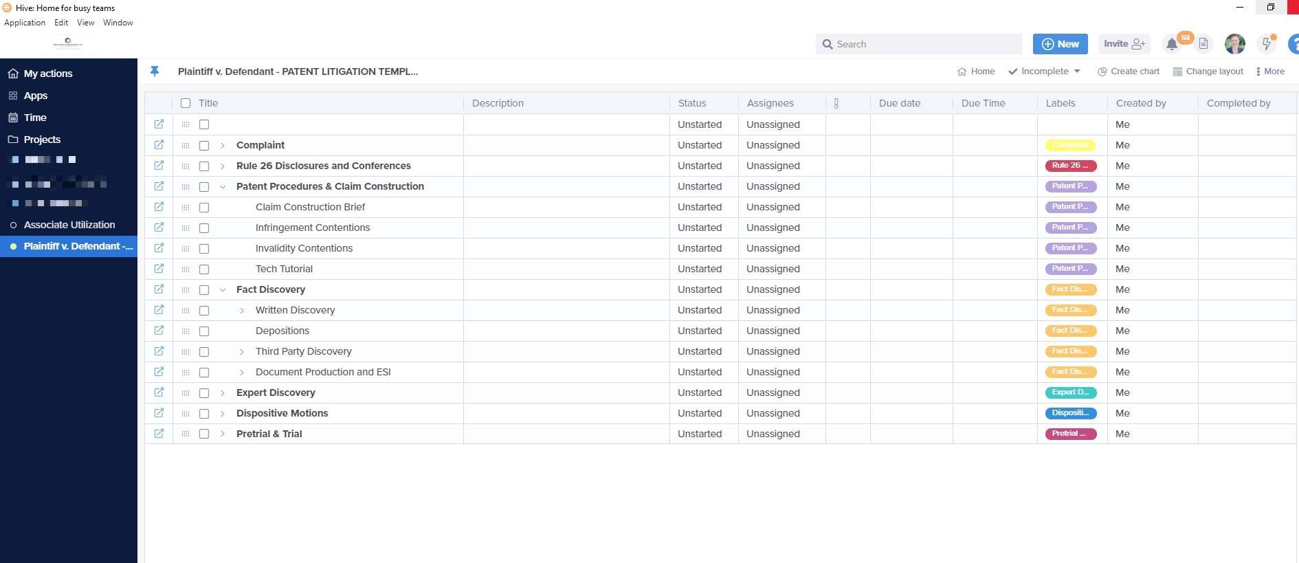 - Customizable: Needed a tool that allowed them to add sub-projects down to any detailed level, add labels, and assign/track projects by attorney, and manage complex deadlines and intermediate reviews.