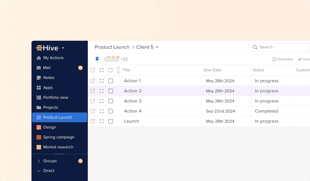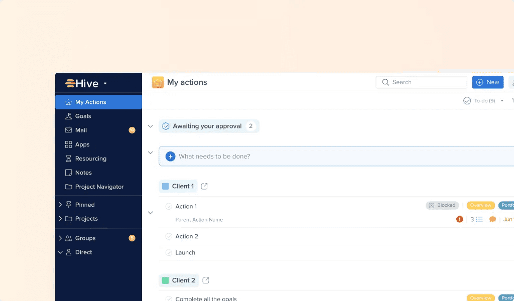 Individual Hive users have a My Actions view, which acts like a personal to-do list. When a user looks at their My Actions view, they only see the actions they are responsible for, while other people’s tasks are filtered out.