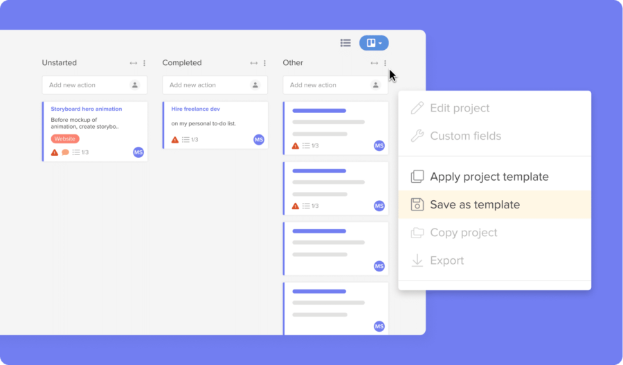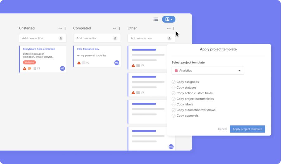 1) Speedy project set-up: The non-profit organization often needs to respond quickly to crises, such as the war in Ukraine. A project management solution that enabled the organization to quickly create new projects was essential. The organization now uses projects and action card templates to start working quickly. A single place for tracking progress also helps teams stay in sync, aligned and updated when handling complex and urgent situations.