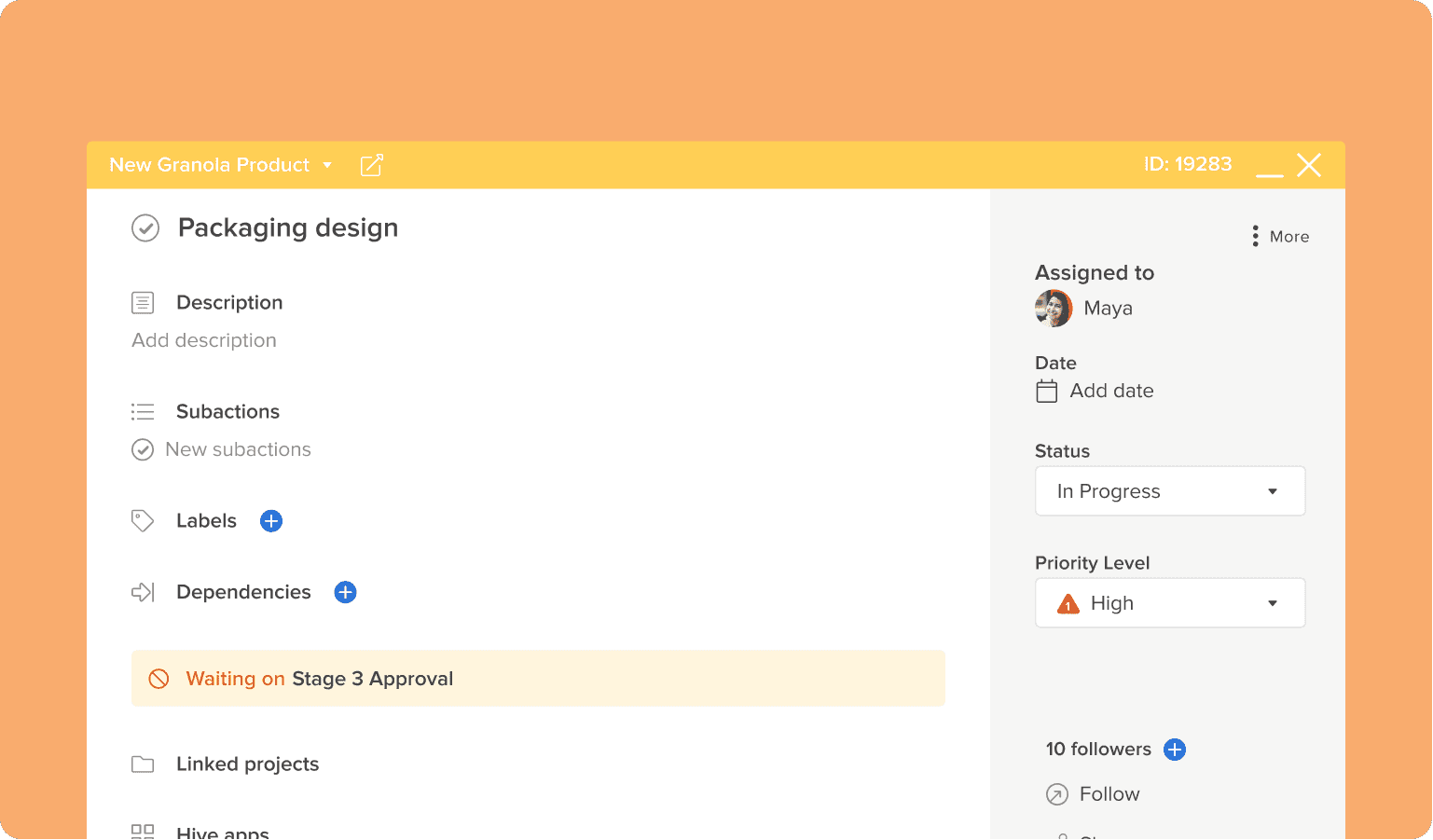 In a project, there are typically tasks that cannot be started until other actions have been completed. Nearly every action is dependent on other actions in some way, shape or form. Using Hive’s dependencies function enables the team to link dependent actions in the appropriate order. This means that future tasks will not be unlocked until all the necessary tasks have been completed beforehand and the previous gate is marked for approval. For example, actions in stage three will not be released until gate three is approved.
