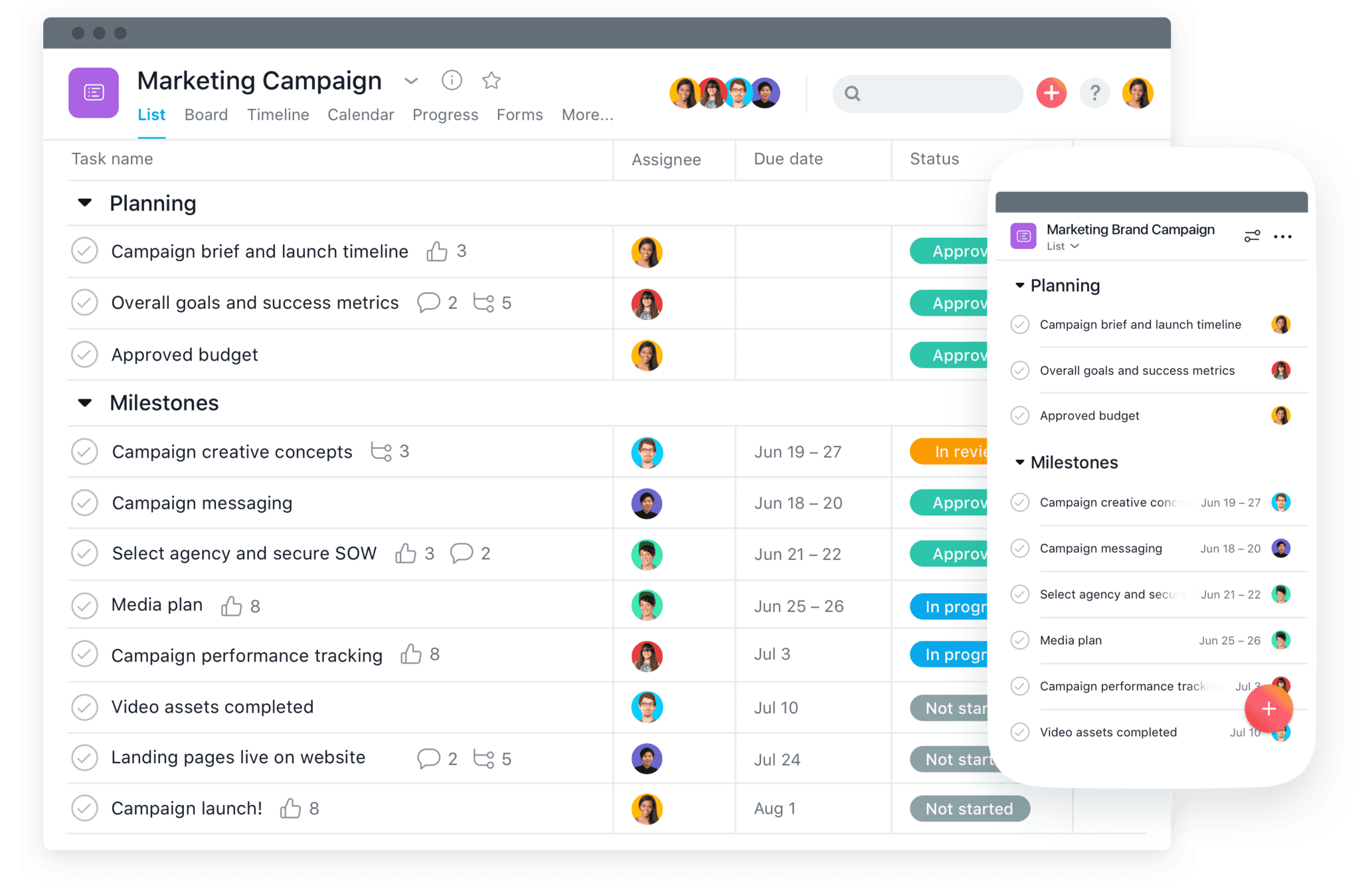Portfolio view that lets you manage milestones across key stakeholders