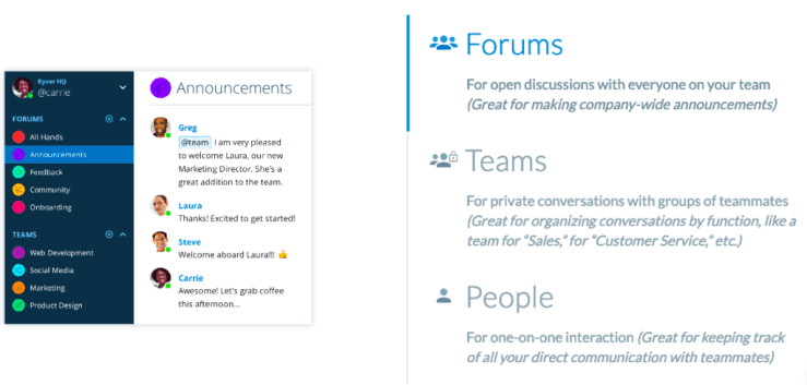 Ryver’s starter plan costs $69 per month and includes up to 12 users.