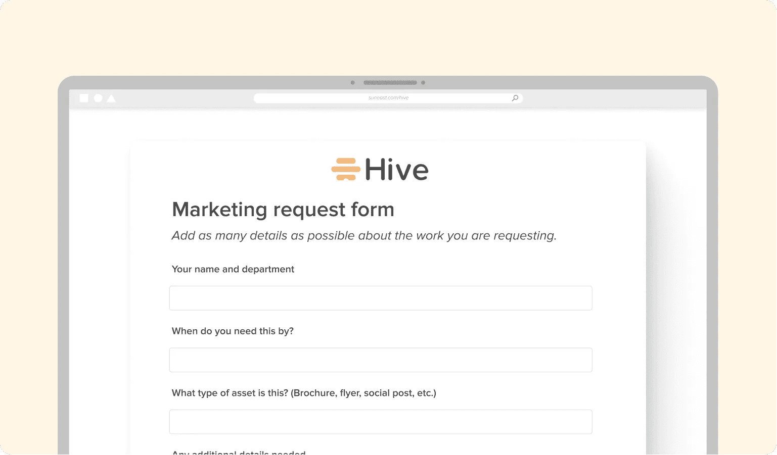 The marketing team receives work requests from various teams across the organization via Hive Forms. To submit a request, anyone at SEFCU can access Hive Form via a URL on the company intranet, fill it out with necessary information about the request, and submit it to the marketing team. From there, the work requests (internally called tickets) are reassigned amongst the team.