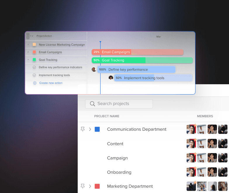 Action and project templates to create repeatable processes and work management styles