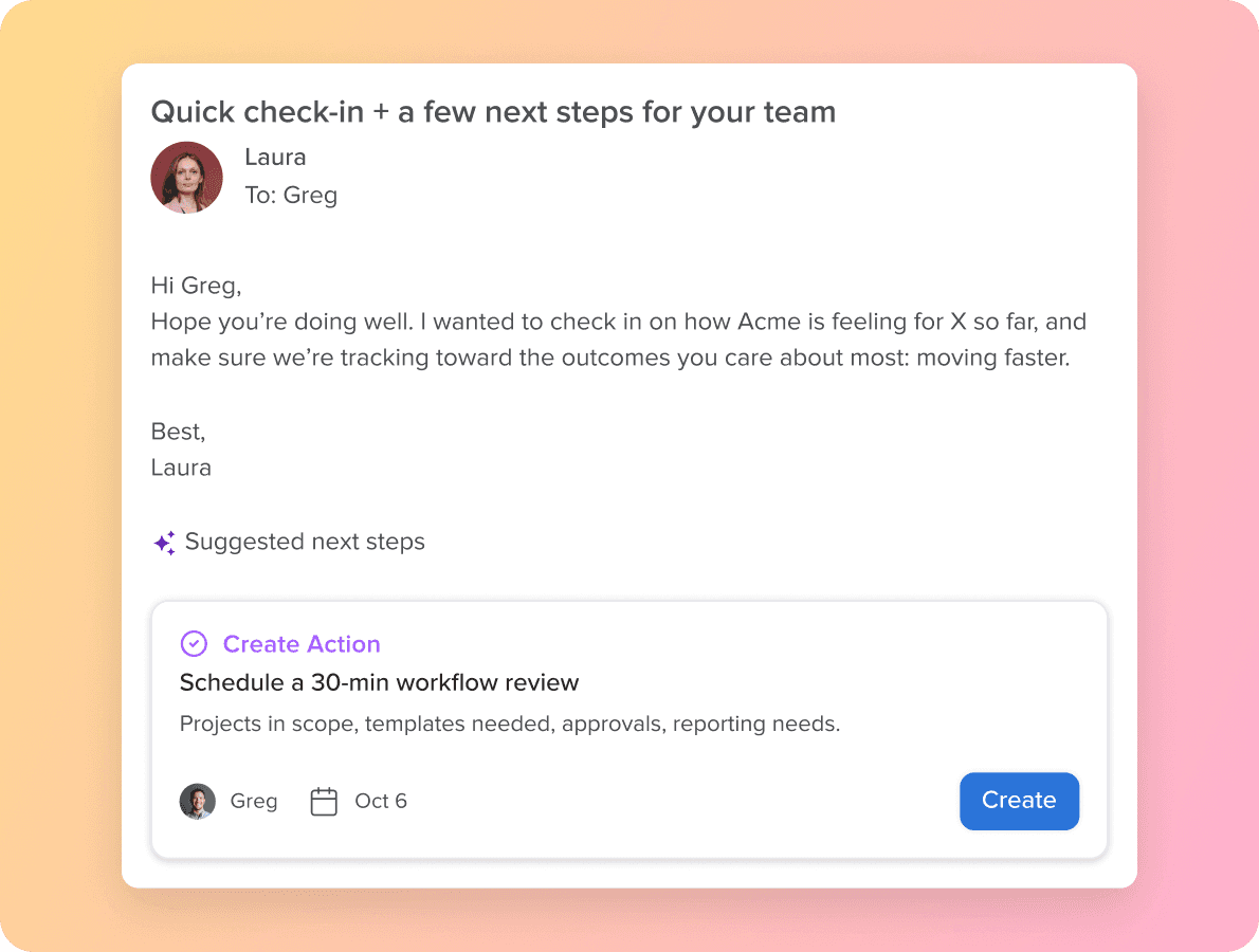 Seamless connection with Salesforce, Gong, Hubspot and more.
