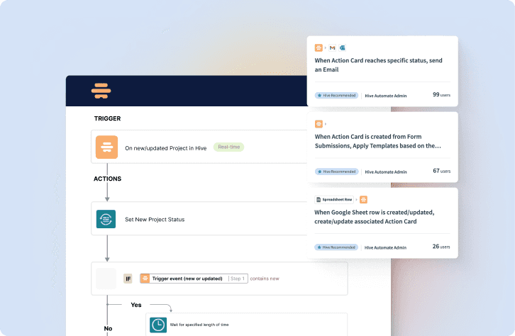 Streamline project creation with Hive Automate. Learn how to set up automation recipes with a few clicks.